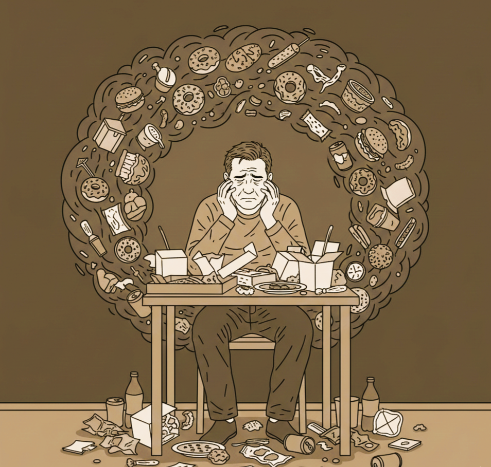 stummes Gewitter aus Kontrollverlust, bei dem das Essen versucht, Hunger zu stillen, der eigentlich im Herzen sitzt